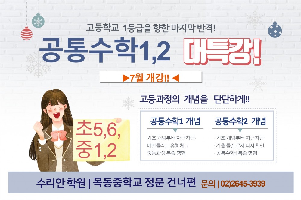 [수리안 학원] 공통수학 1,2 7월 개강!! 페이지 정보 작성자 수리안학원 댓글 0건 조회 2,191회 작성일 25-06-24 15:05 본문 학원정보 수리안 학원 02-2645-3939 전화문의 위치 양천구 목동사로 291 제이월드빌 2층 대상 초등 중등 고등 과목 수학 수업목적 내신/심화/선행 수능 지도보기 관심학원 담기 목록 이전글우영재영어 영문법교실 - 주1회수업 (6개월 완성반) 25.06.25 다음글[목동페르마목동관학원] 상위 1% 고등수학 전문, 여름방학 고등수학 수강생을 모집합니다. 25.06.24 댓글목록 댓글목록 등록된 댓글이 없습니다.