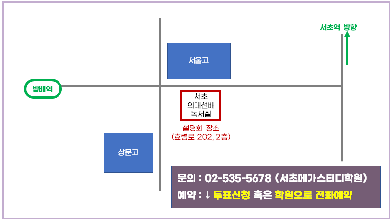 장소 : 효령로 202, 서초빌딩 2층 (상문고와 서초고 중간 사거리 위치)