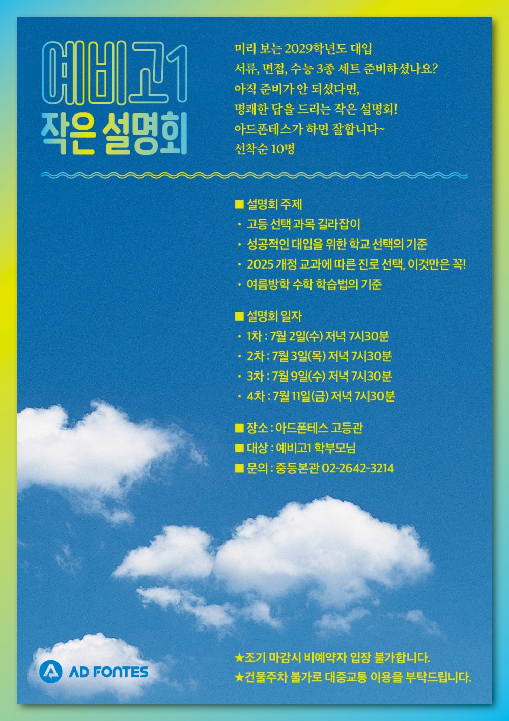 [아드폰테스] 중등본관, 예비고1을 위한 '작은 진로 설명회'