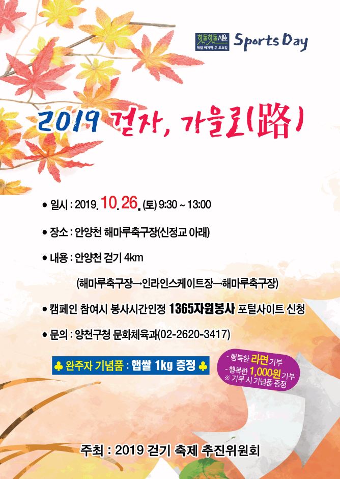 2019 걷기 축제 추진위원회에서 추진하는 안양천 걷기축제에