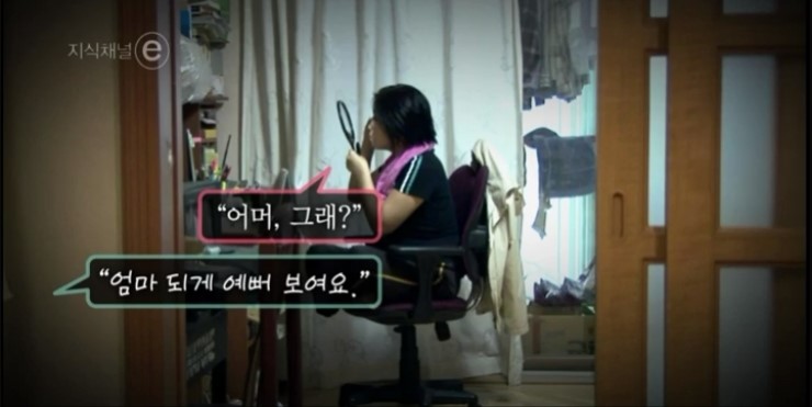 한참 동안 거울을 바라보는 엄마의 소녀 감성