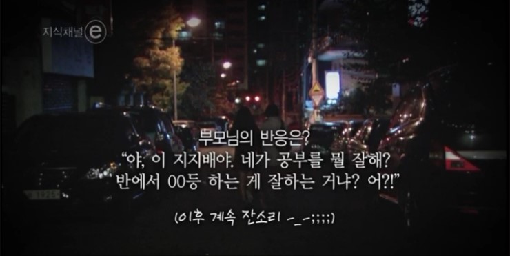반에서 00등 하는 게 잘하는 거냐? 어?"