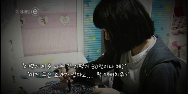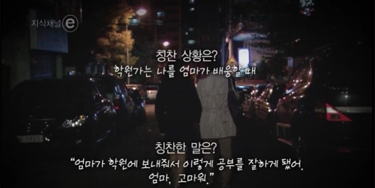 "엄마가 학원에 보내줘서 이렇게 공부를 잘하게 됐어. 엄마, 고마워."