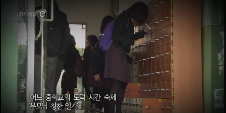 어느 중학교의 도덕 시간 숙제 "부모님 칭찬 일기"